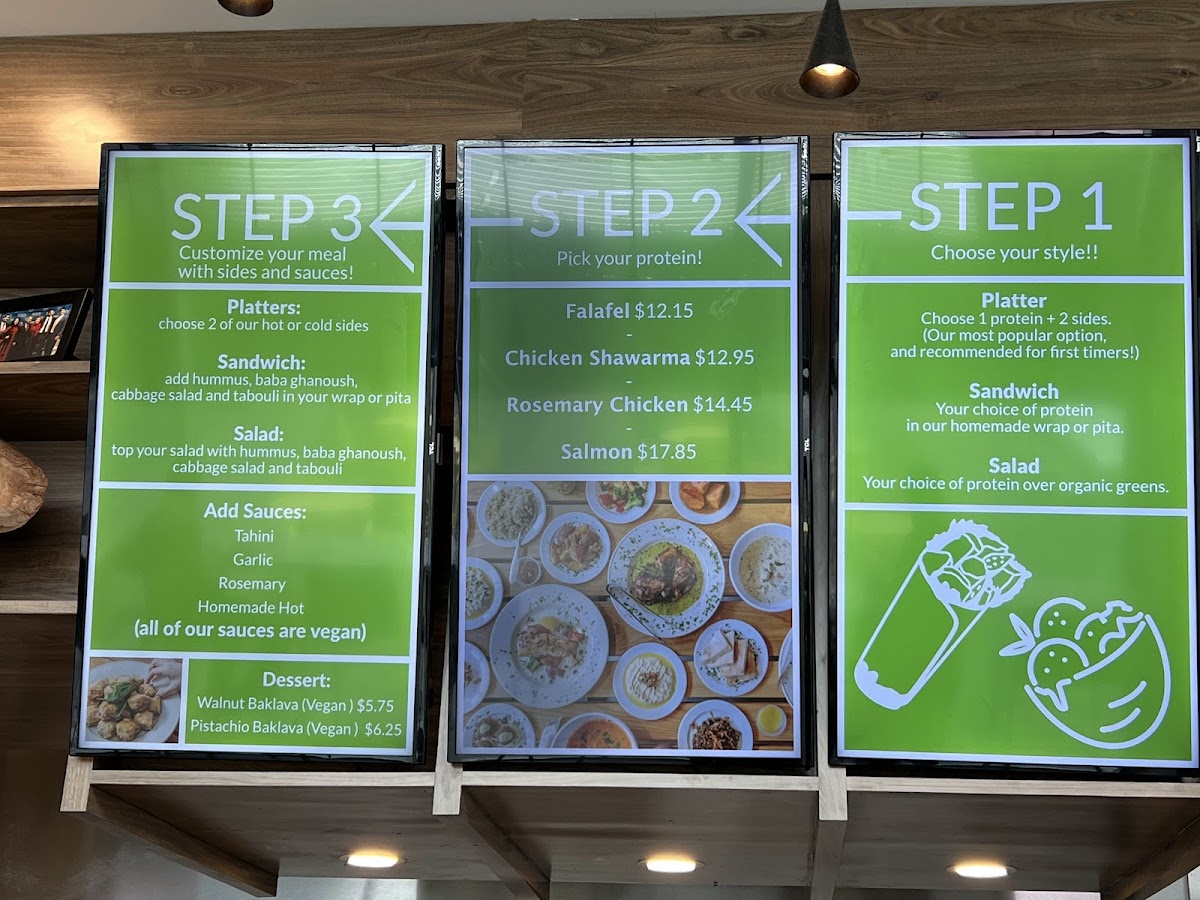 The menu is a delightful blend of options catering to diverse diets. Highlights include the renowned rosemary half-chicken, falafel plates with generous sides, and a selection of fresh salads and wraps. Vegan treats like the pistachio baklava are not to be missed. Customers rave about the creamy soups, although some find them a bit salty.